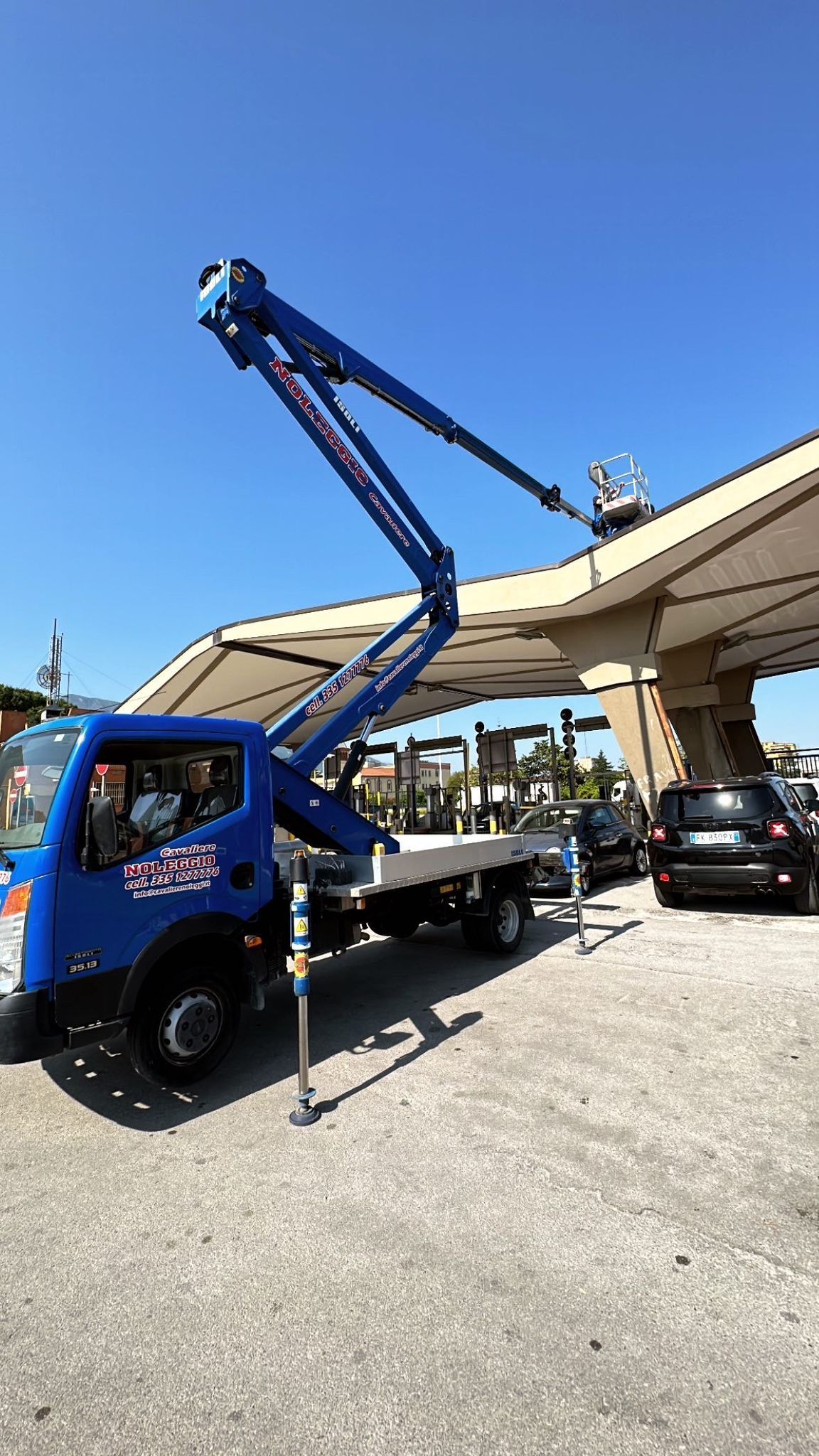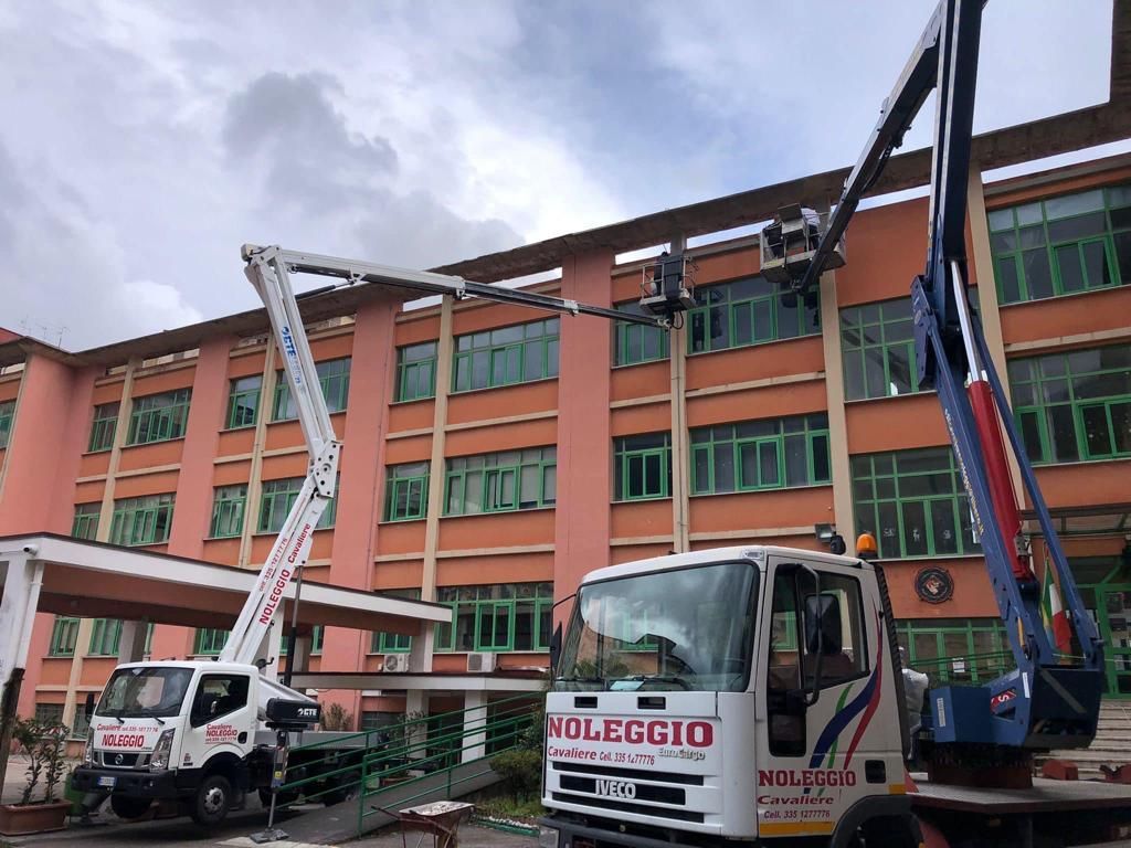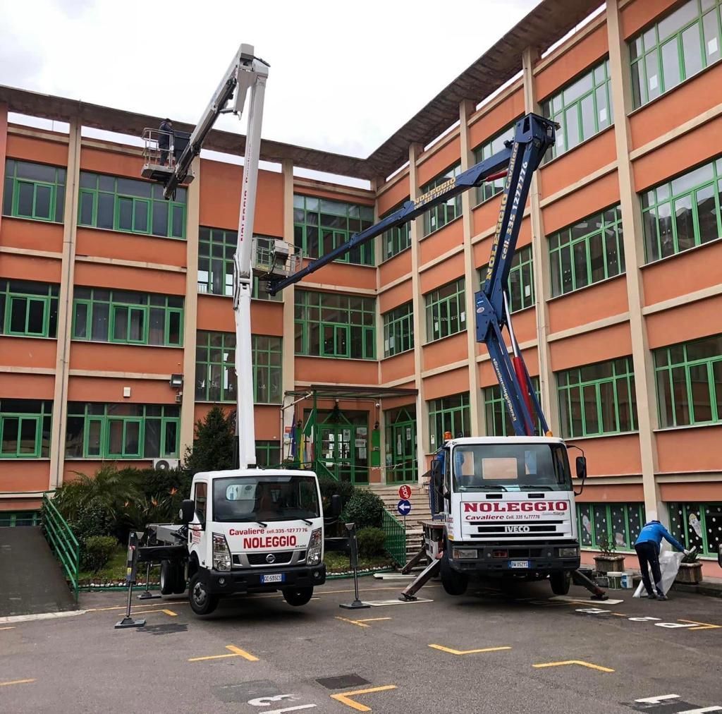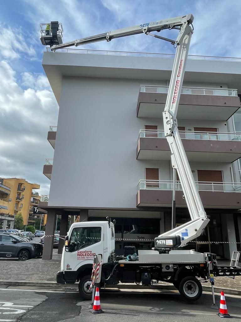 - Autocarrate con braccio telescopico e/o articolato, allestite su veicoli indipendenti adatti per trasferimento su strada con patente di guida B o C, con stabilizzatori idraulici opportunamente piazzati per l'utilizzo della parte aerea con torretta girevole in grado di sbracciare a 360°.